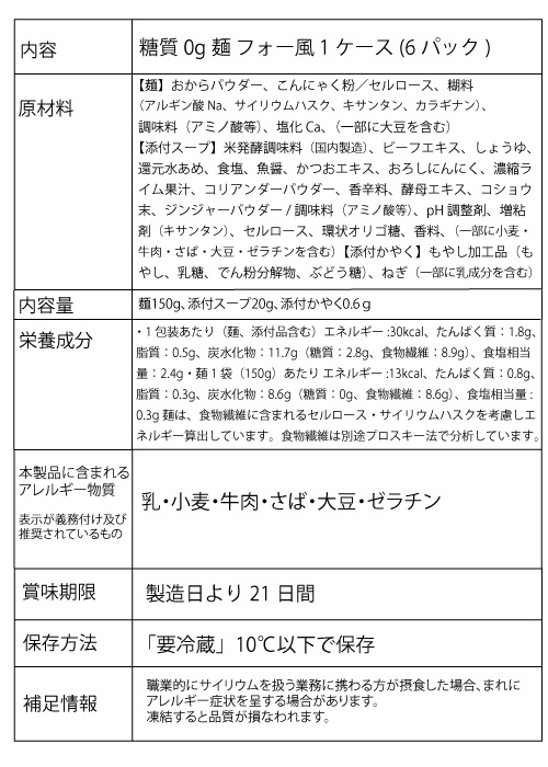 糖質0g麺フォー風(平麺)1ケース(6パック)