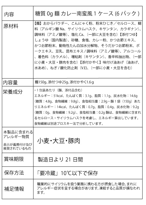 糖質0g麺カレー南蛮風(そば風麺)1ケース(6パック)